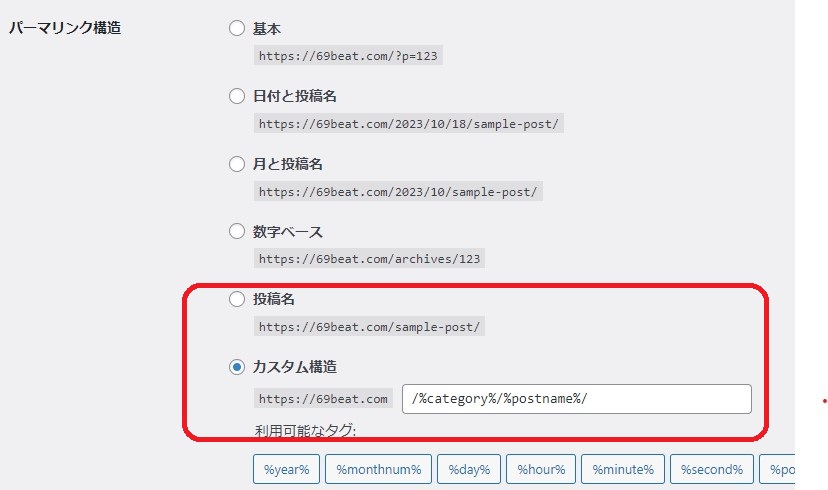 ちなみに当ブログサイトはカテゴリ/ポスト名で設定してる。