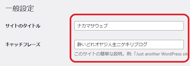 サイトに表示されるタイトルとキャッチフレーズも決まってなければこのタイミングで設定しておく。
