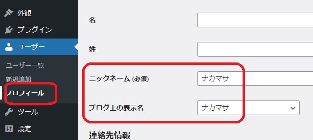メニュー>ユーザー>プロフィール からニックネームとブログ上の表示名を選択して保存。