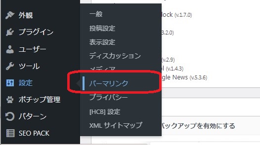 まずはじめはパーマリンク設定。パーマリンクとは記事ごとに設定されるURLの事です。パーマリンクは後々変更するとGoogle検索がリセットされアクセス減ったりとか何かとメンドクサイので最初に設定してます。